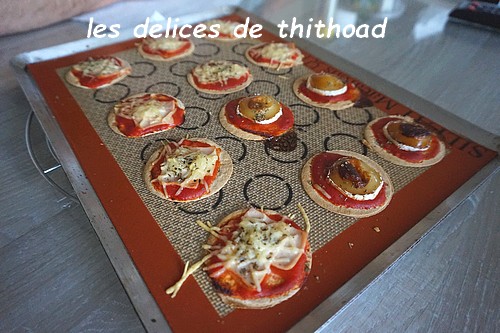 le blanc de poulet 0SP et le gruyère râpé (20g) 3 SP et enfin le miel 1 cac 1 SP ; chaque mini pizza valait donc entre 3 et 4 SP.