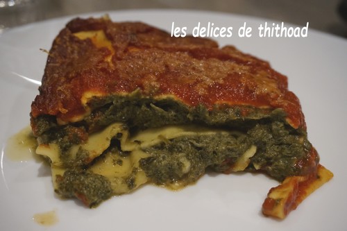 Ces lasagnes sont vraiment rapide à réaliser car j’ai utilisé des conserves d’épinards hachés, mais bien sûr vous pouvez très bien prendre des épinards frais et les faire réduire à la poêle.