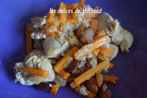 Ajouter les légumes et les amandes et continuer la cuisson quelques minutes.