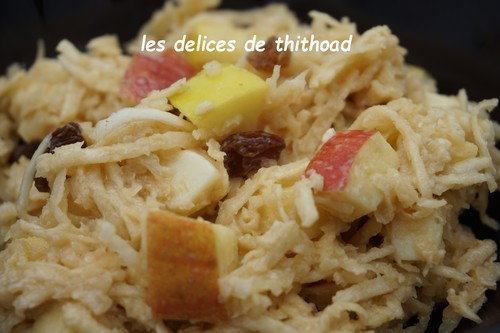 Voici une salade qui a beaucoup plu sauf à Thomas qui m’a avoué au moment de manger qu’il n’aimait pas le céleri…….