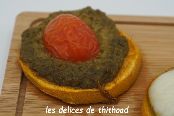 Thithoad du blog les délices de Thithoad avec toasts de patates douces au chèvre ou tomates cerises.