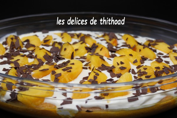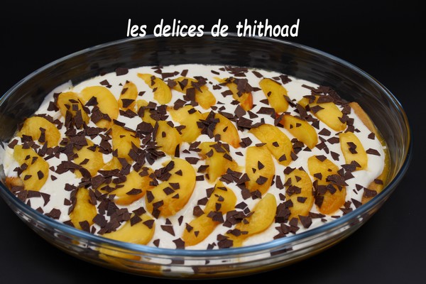 Il décline ce dessert avec des framboises mais personnellement j’ai choisi des pêches comme fruit de saison.