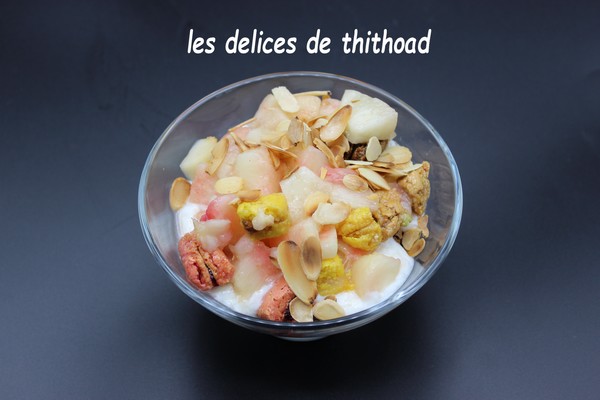 Faire griller les amandes et les parsemer sur les coupes.