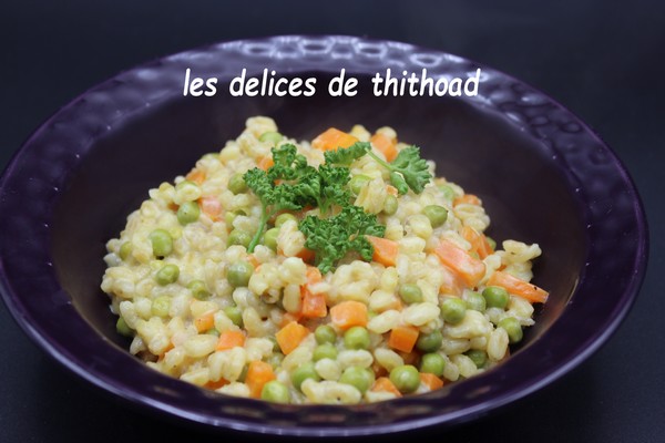 Ajouter le bouillon petit à petit en attendant qu’il soit absorbé entre chaque ajout.