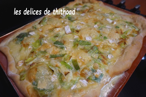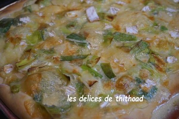 Voici une nouvelle pizza, avec les poireaux du jardin et un brie bien fait.