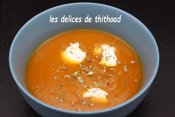 Au moment de servir déposer des billes de fromage frais sur la soupe et servir.