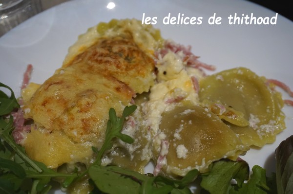 A la base cette recette devait être réalisée avec des raviolis aux légumes.
