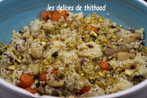 perles de couscous, légumes, pistaches