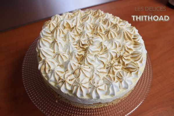 Une base de gâteau à la poudre d’amande, une mousse au citron légère et une meringue Italienne.