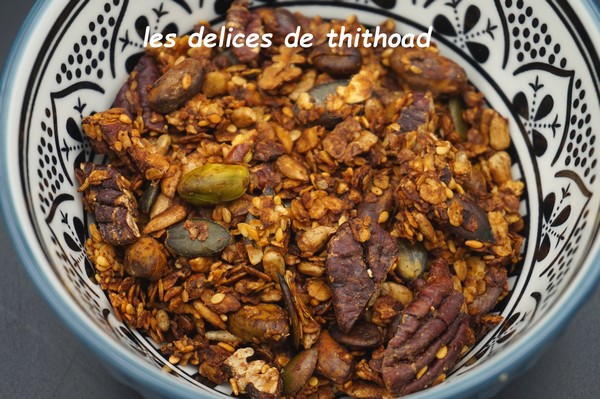 Pendant cette période pas toujours simple, je cuisine quand même, et j’ai réalisé ce petit granola pour l’apéritif.