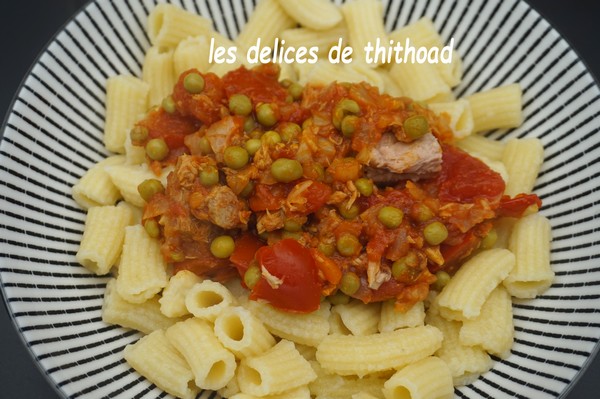 Un plat tout simple réalisé avec des conserves, sauf pour les pâtes que je réalisent moi-même.