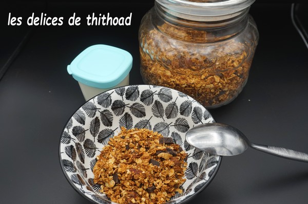 C’est un granola que je prépare depuis plusieurs mois pour les petits déjeuners d’Adèle (et de Thomas quand il est de passage).