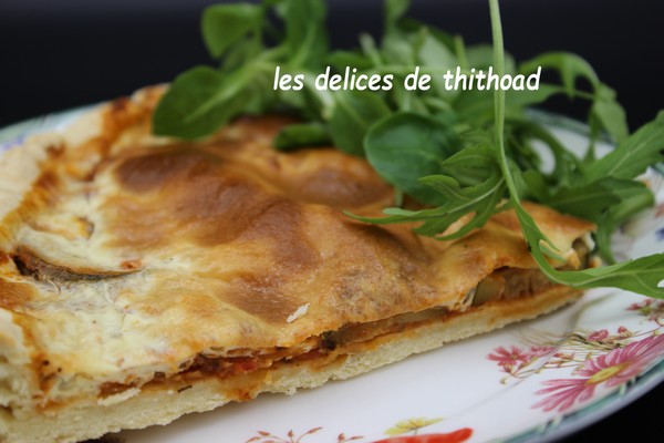 J’avais dans mon placard une boite de ratatouille, et j’ai donc eu l’idée de réaliser cette quiche qui nous a bien régalé.