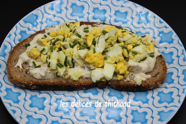 Cette fois-ci j’ai choisi de réaliser des tartines avec du pain de campagne qui me restait.