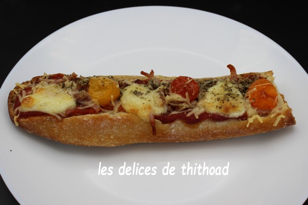 Sur la recette initiale, il fallait des grandes tranches de pain de campagne, mais pour moi j’ai utilisé de la baguette coupée en deux.