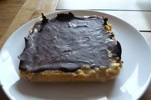J’ai essayé hier de faire un gâteau à plusieurs couches. Le résultat ne correspond pas vraiment à la photo du livre , mais le goût y était ; et vous me direz c’est l’essentiel!!