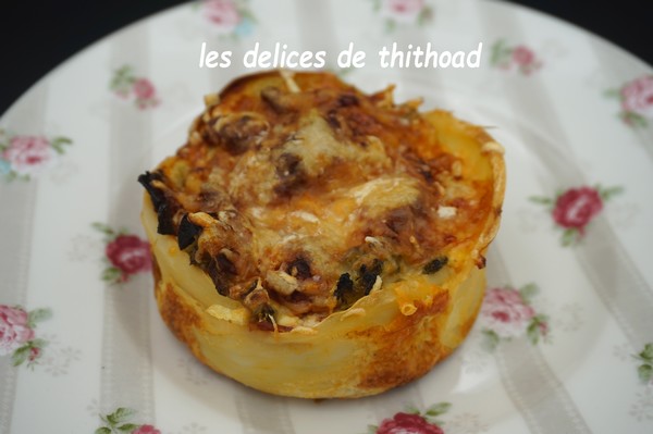 C’est très facile à réaliser , juste un peu de patience pour faire tenir les lamelles de pommes de terre sur le pourtour des empreintes grands ronds DEMARLE.