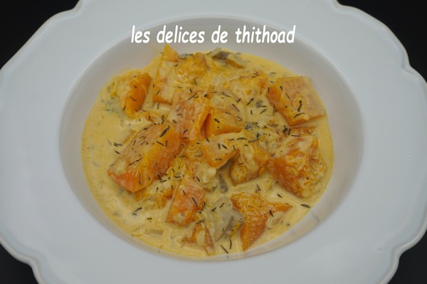 il y a beaucoup d’herbes aromatiques dans cette recette et ça permet de bien parfumer ce légume d’automne.