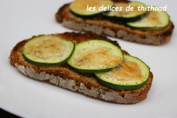 Avec un reste de courgette, un oignon et du parmesan je tartine mes tranches de pain de campagne et hop au four !