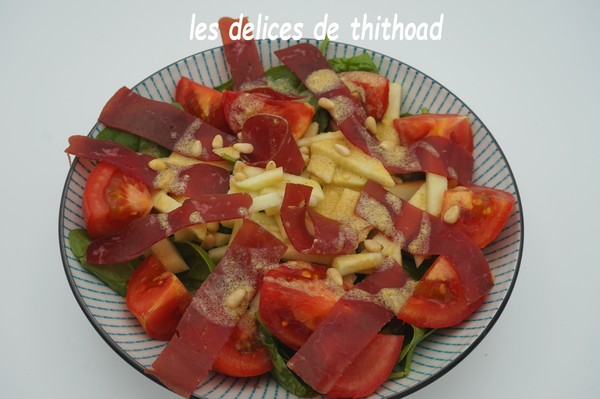 Une salade originale au programme aujourd’hui où on associe le salé et le sucré.