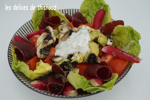 J’ai servi cette salade le midi du 31 décembre afin de ne pas se charger l’estomac pour le réveillon du soir.