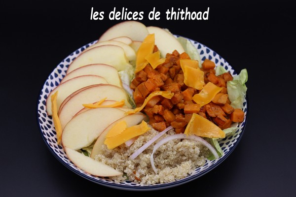 Voici une salade sucrée salée parfaite pour le repas du soir ou même si vous le souhaitez à emporter au bureau ou même en pique-nique.