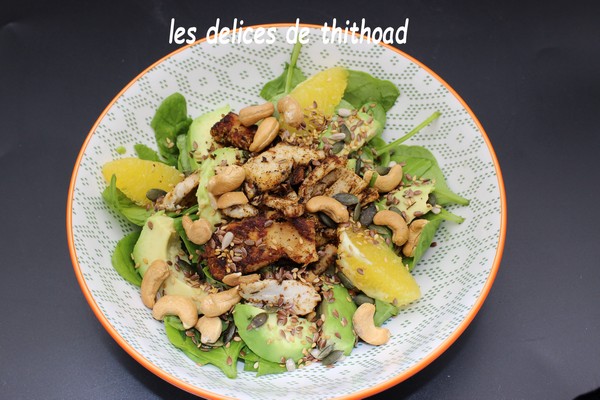 Une bonne salade, complète, servie un dimanche midi accompagné d’un dessert (à venir) à base d’ananas.